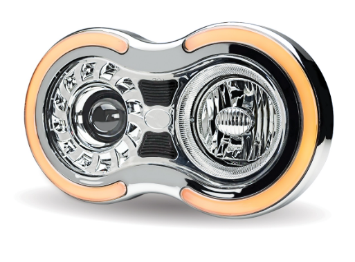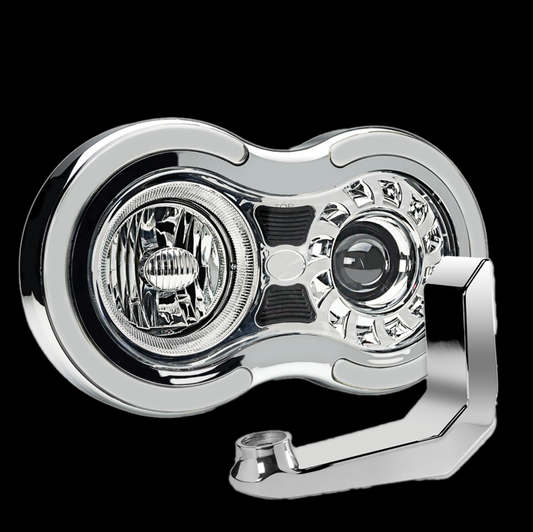 Chrome "Retro Series” Headlight Assembly With Dual Function Halo Accents - Passenger Side (No Bracket)