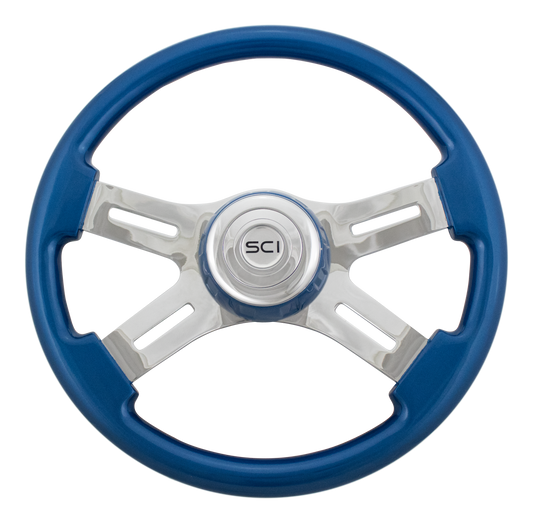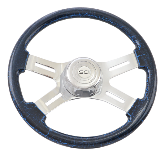 16" Classic Blue Crackle - 16" Painted Wood Rim, Chrome 4-Spoke w/Slot Cut Outs, Chrome Bezel, Chrome Horn Button - SCI Logo