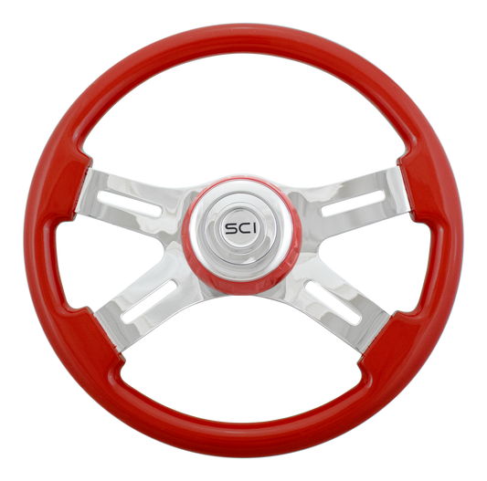 16" Classic Viper Red - 16" Painted Wood Rim, Chrome 4-Spoke w/Slot Cut Outs, Viper Red Bezel, Chrome Horn Button - SCI Logo
