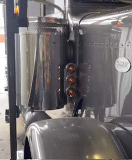 Front Peterbilt 15" Air Cleaner Bracket with Radius ends w/ 3 Watermelon Light Holes (Pair). 14 Gauge. (Size 11 1/2" x 4 1/4")