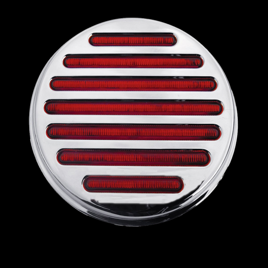 4" Fleet Flange Mount LED Stop Light with Chrome Twist & Lock Bezel. Red/Red Chrome bezel