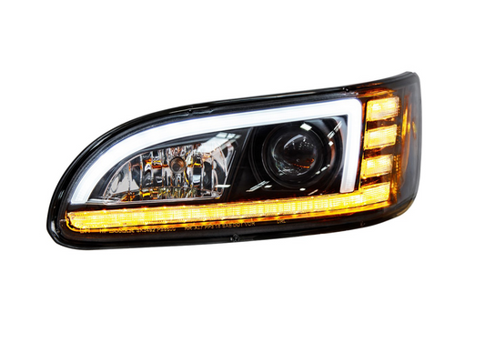BLACK PROJECTION HEADLIGHT WITH LED SEQUENTIAL TURN & DRL FOR 2005-2015 PETERBILT 386 / 335 (2005 - 2010) - DRIVER