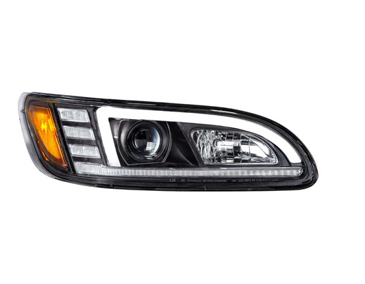 BLACK PROJECTION HEADLIGHT WITH LED SEQUENTIAL TURN & DRL FOR 2005-2015 PETERBILT 386 /335 (2005 - 2010) - PASSENGER