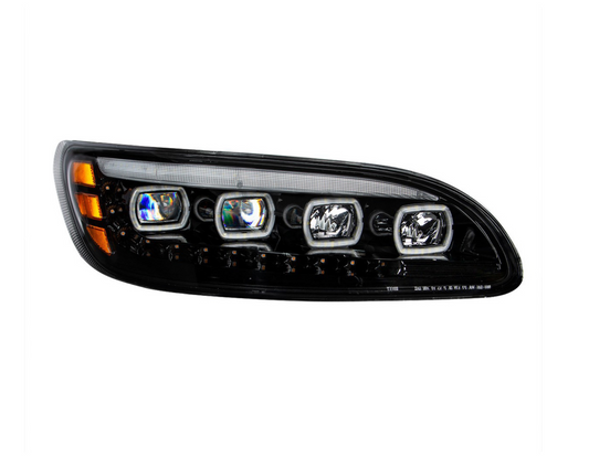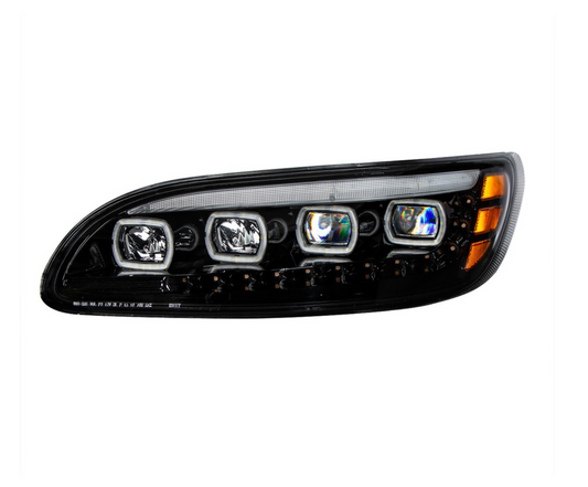 BLACK QUAD-LED HEADLIGHT WITH LED DRL & SEQ. SIGNAL FOR 2005-2015 PETERBILT 386 / 335 (2005-2010) - PASSENGER