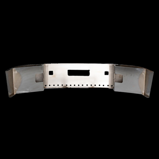 Bumper 20" Chrome Peterbilt 365/388/389/567 (2007+) & Kenworth W990 (2018+) Square Hand Rolled End w/ Square Fog Light Holes, External Tow Holes & 18 Button Light Holes