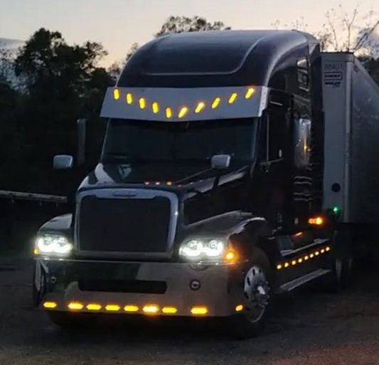 Visor 20" Close to Windshield w/ 6 Hidden Light Holes, Freightliner Classic/FLD Condo - Stainless Steel