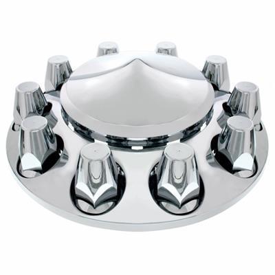 Truck City Chrome & Parts - Chrome Pointed Front Axle Cover. 8 hole 3 PC Kit w/ 33mm Nut Cover