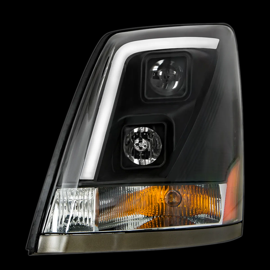 Volvo VN/VNL Matte Black Projector Headlight W/White High Power LED Position/Daytime Running Light Driver