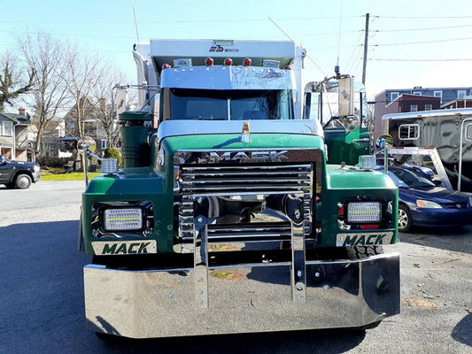 Bumper 20" Chrome Mack CXU Set Back Axle (2008+) Anthem Set Back Axle (2017+) w/ Fog Light, Step, Tow & Vent Holes.