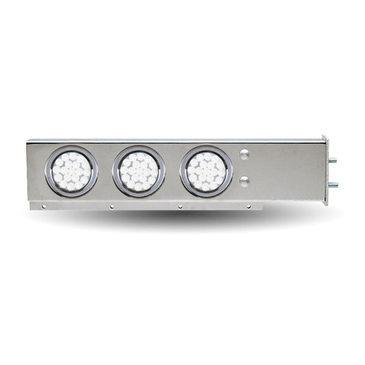 91047GG - Stainless Steel Spring Loaded Mud Flap Hanger Two Piece Rear Light Bar W/ 4″ Fleet Leds & Chrome Bezels. Clear/Red (Pair)