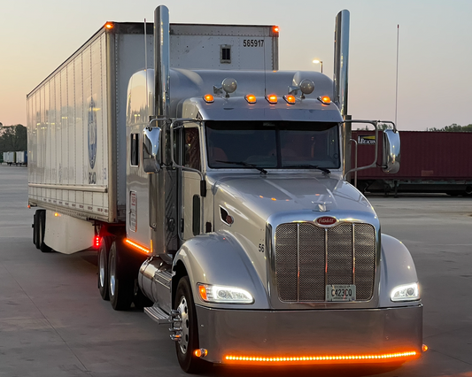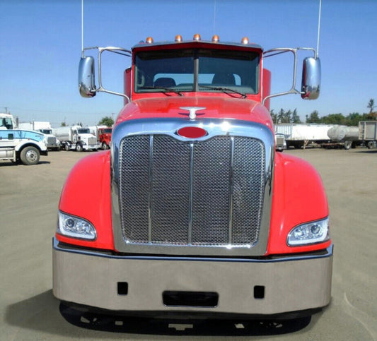 Bumper 20" Chrome Peterbilt 386 Wrap-Aroud 3” Aero/Grill, Tow Holes, 9 Hidden Light Holes