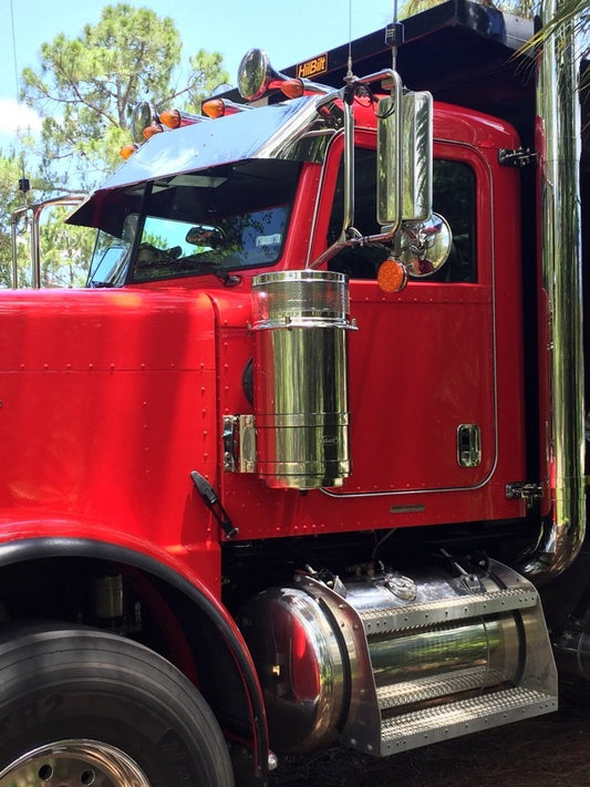 Visor 13" Stainless Steel Peterbilt 330/335/337/340/348/357/365/367/378/384/386/388 - Door Mounted Mirrors (2004 and Earlier)