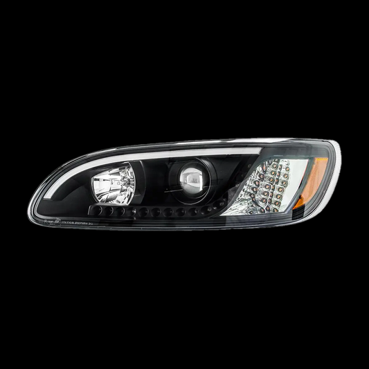 Peterbilt 386 (2006-2015) / 387 (2001-2011) Black Out Headlight with White High Power LED Position/Daytime Running and LED Turn Signal Light - Driver Side