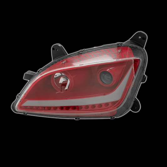 Red Housing Dragon Eye Headlight With LED Turn Signal and Day Light Bar (Driver Side ) fits Peterbilt 579 & 587