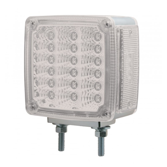 Amber/Red Turn & Marker Square Reflector Double Face LED Light – Double Post | 38 Diodes | Clear Lens - SOLD IN PAIRS