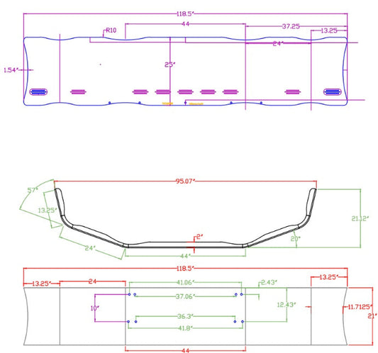 Bumper 20" Chrome Kenworth T800 (1986-2003) w/ Vent, Tow, Fog & Hidden Light Holes . (Custom FG-57)