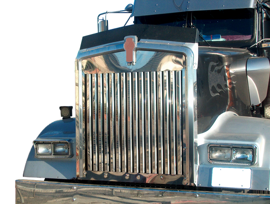 Kenworth W900L Long Hood Grill w/ 15 Vertical Bars.