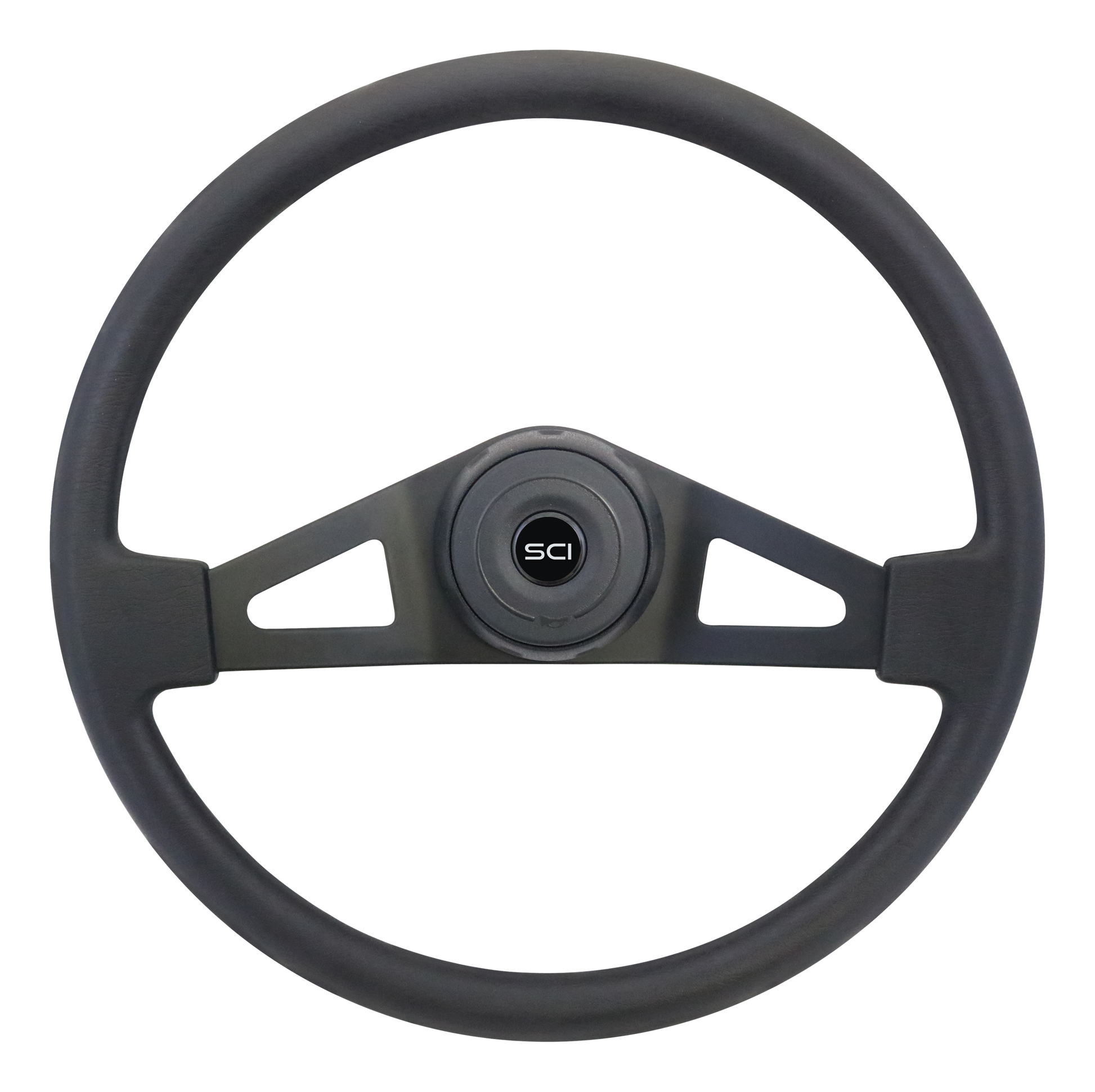 18" Polyurethane Rim, Black 2-Spoke w/Triangle Cut Outs, Black Textured Bezel, SCI Black Horn Button - Logo