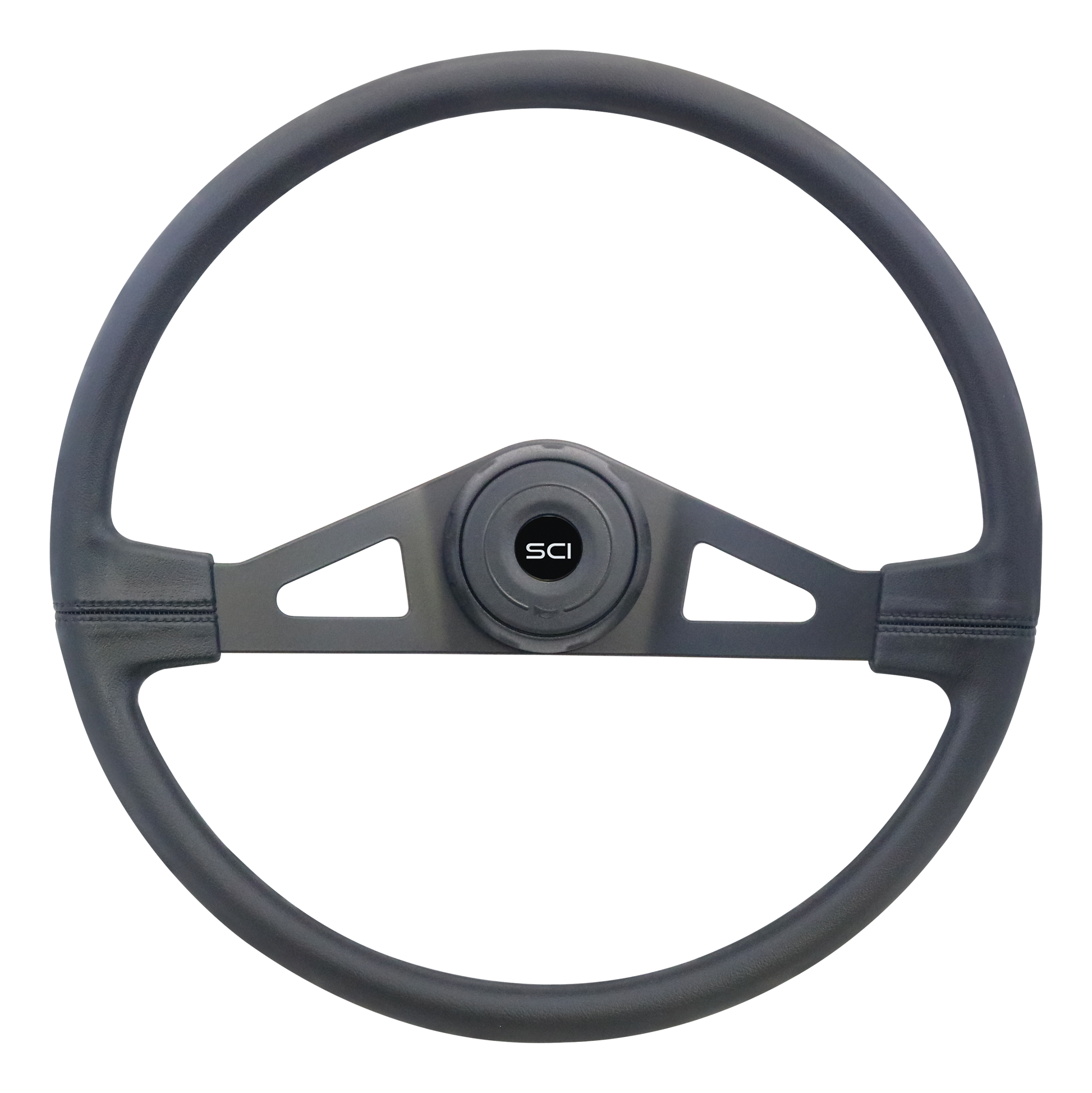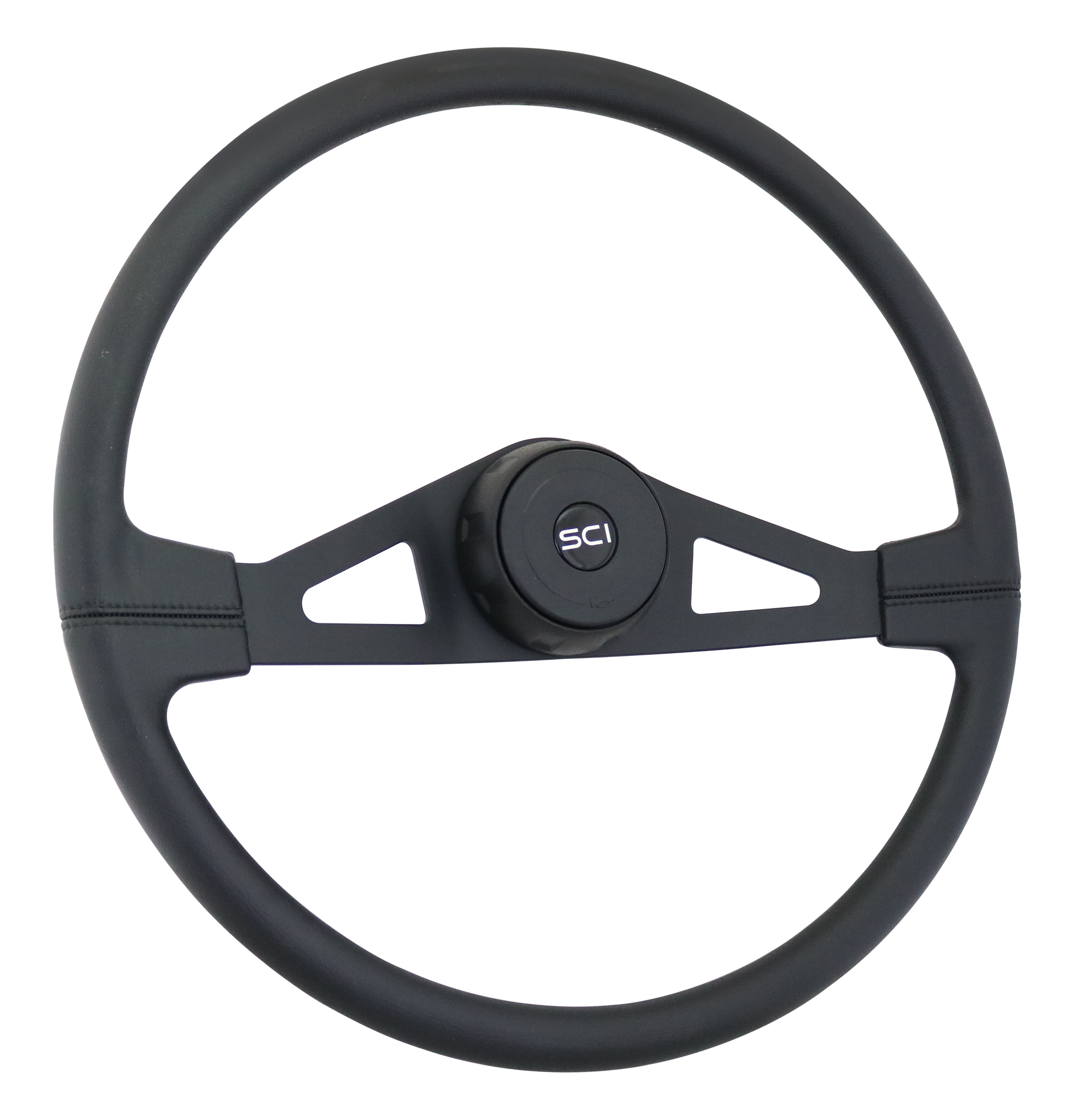 Steering Wheel Taft - 20" Polyurethane Rim, Black 2-Spoke w/Triangle Cut Outs, Black Textured Bezel, Black Horn Button - Black SCI Logo