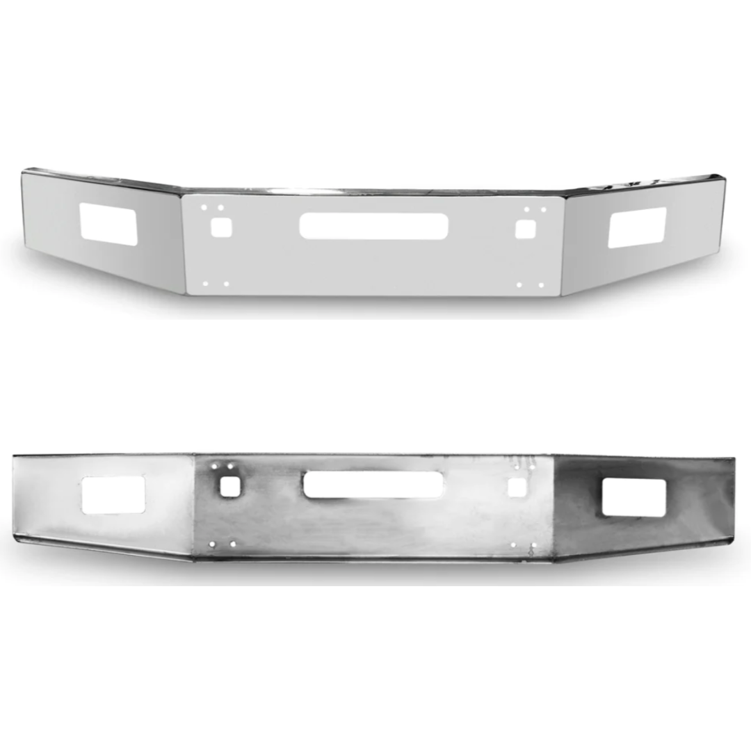 Bumper 14" Chrome Kenworth T800 (1986-2003) Tapered End to 10" w/ Step, Tow & Fog Light Holes