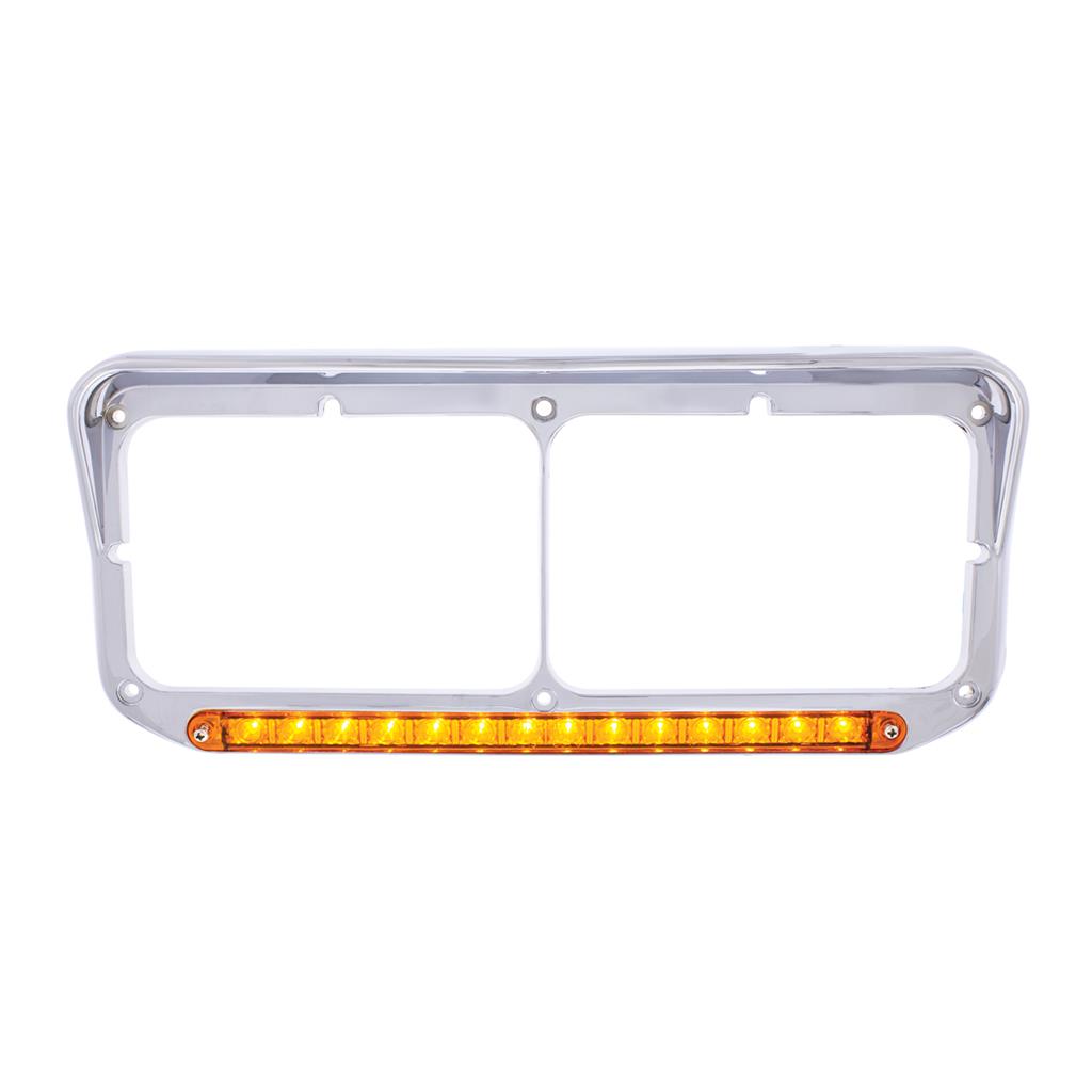 Chrome Plastic 14 Amber Led Rectangular Headlight Bezel W/ Visor