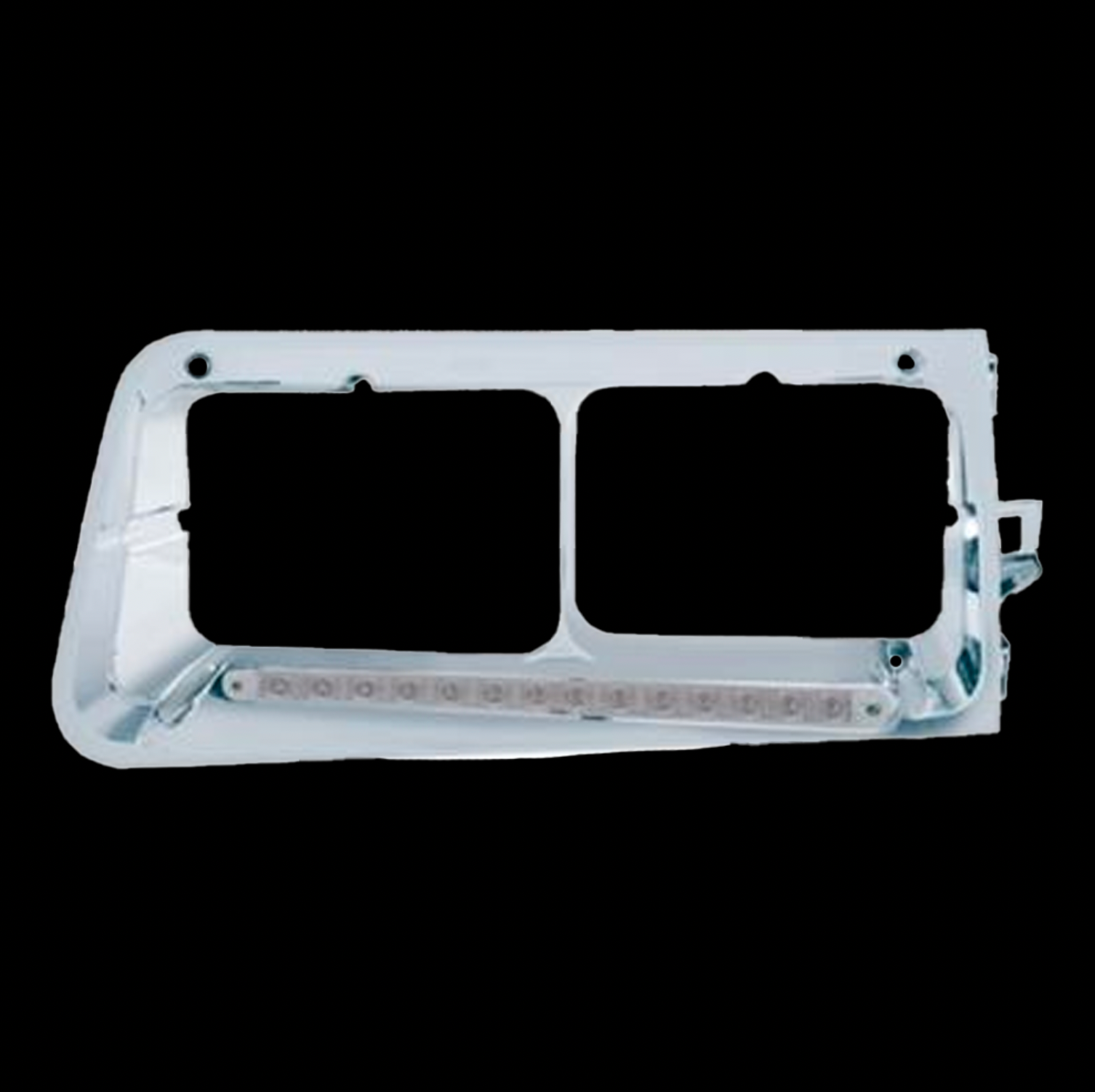- Fits Freightliner FLD with 2 piece clip-on turn signal headlight bezel.