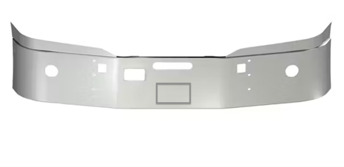 16" Chrome Bumper Kenworth T680 New Generation Set Back Axle 2021 & Newer Tow pins, radar, fog lights and license plate cutout