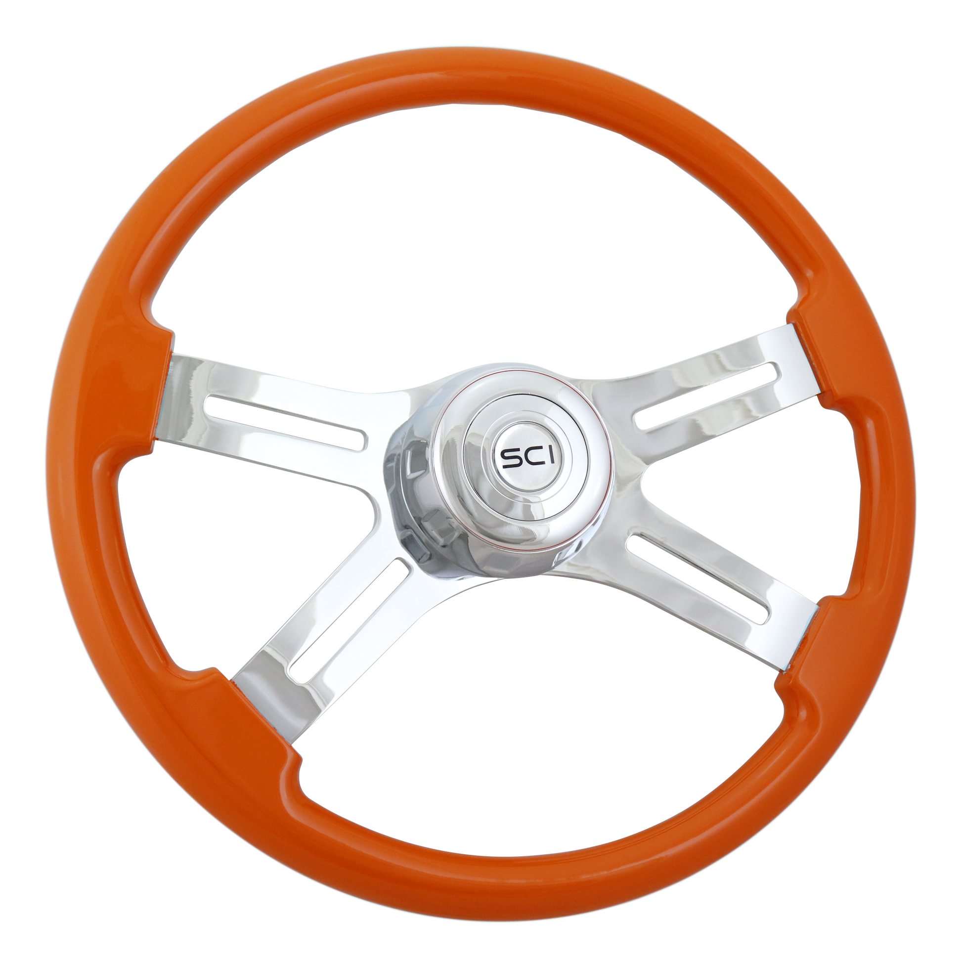 18" Painted Wood Rim, Chrome 4-Spoke w/ Slot Cut Outs, 3-bolt hub and horn button/bezel assembly available separately