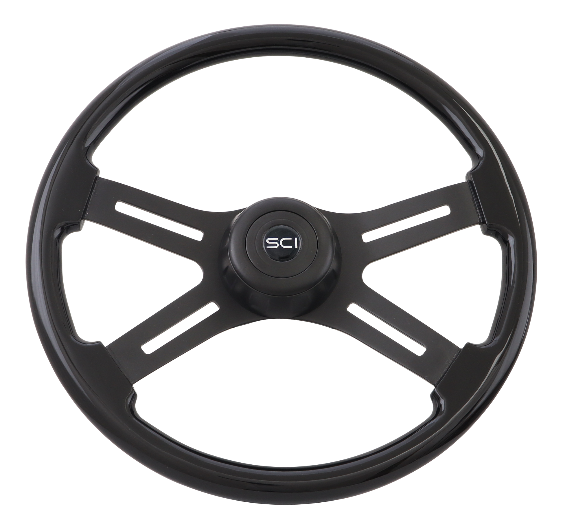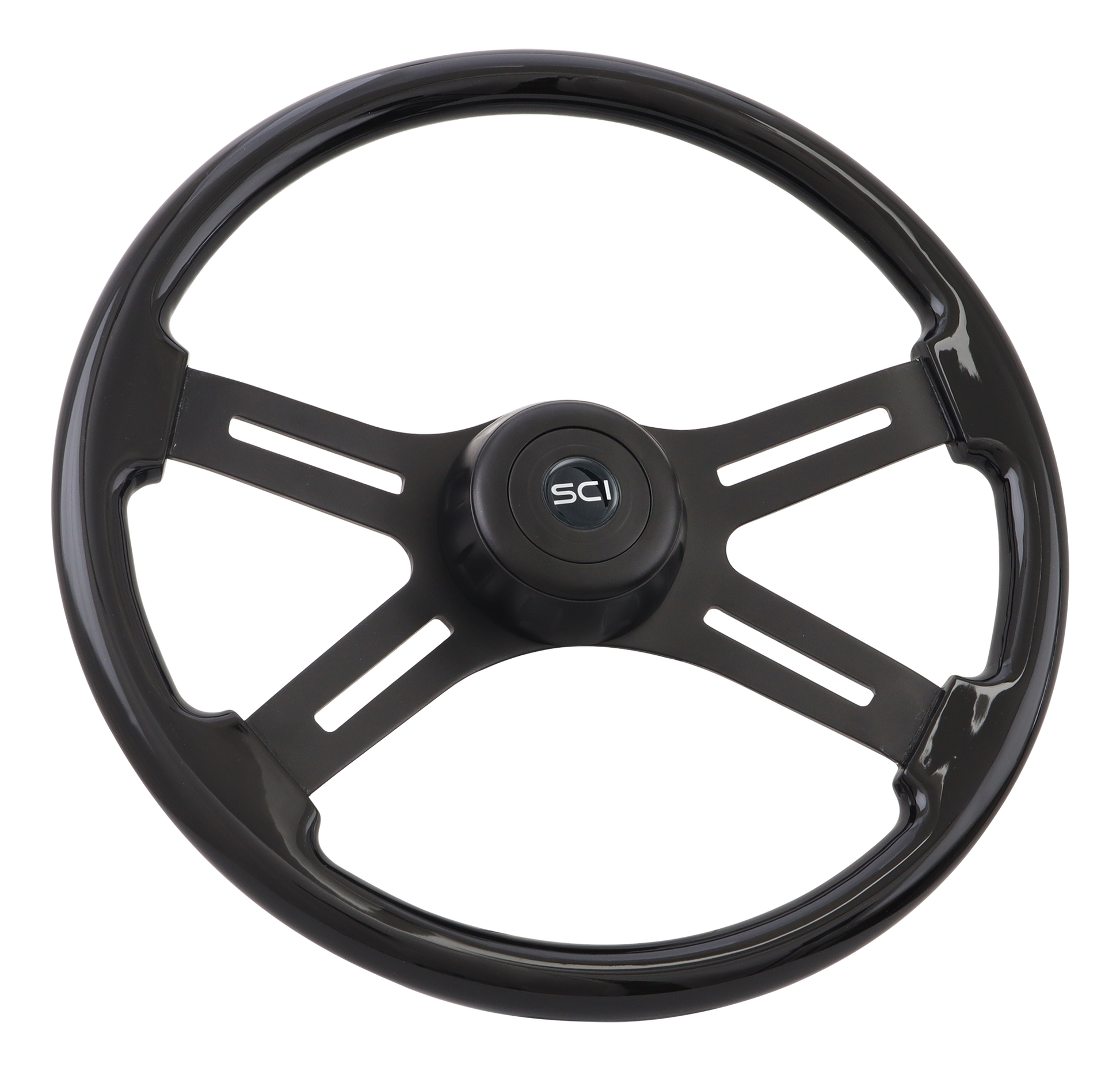 Midnight Black - 18" Black Rim, Matte Black 4-Spoke w/Slot Cut Outs, Matte Black Bezel, Matte Black HB - Black SCI Logo
