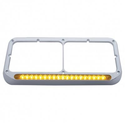 Chrome Plastic Dual Headlight Bezel W/ 19 Amber Led 12" Reflector Light