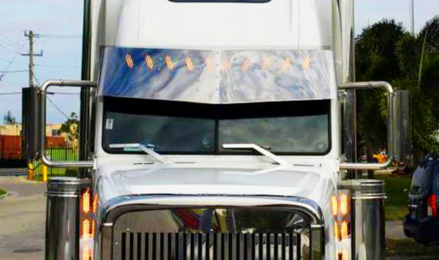 Visor 20" - 18" "V"-Style w/ 10 Hidden Light Holes Freightliner Classic / FLD Condo - Stainless Steel