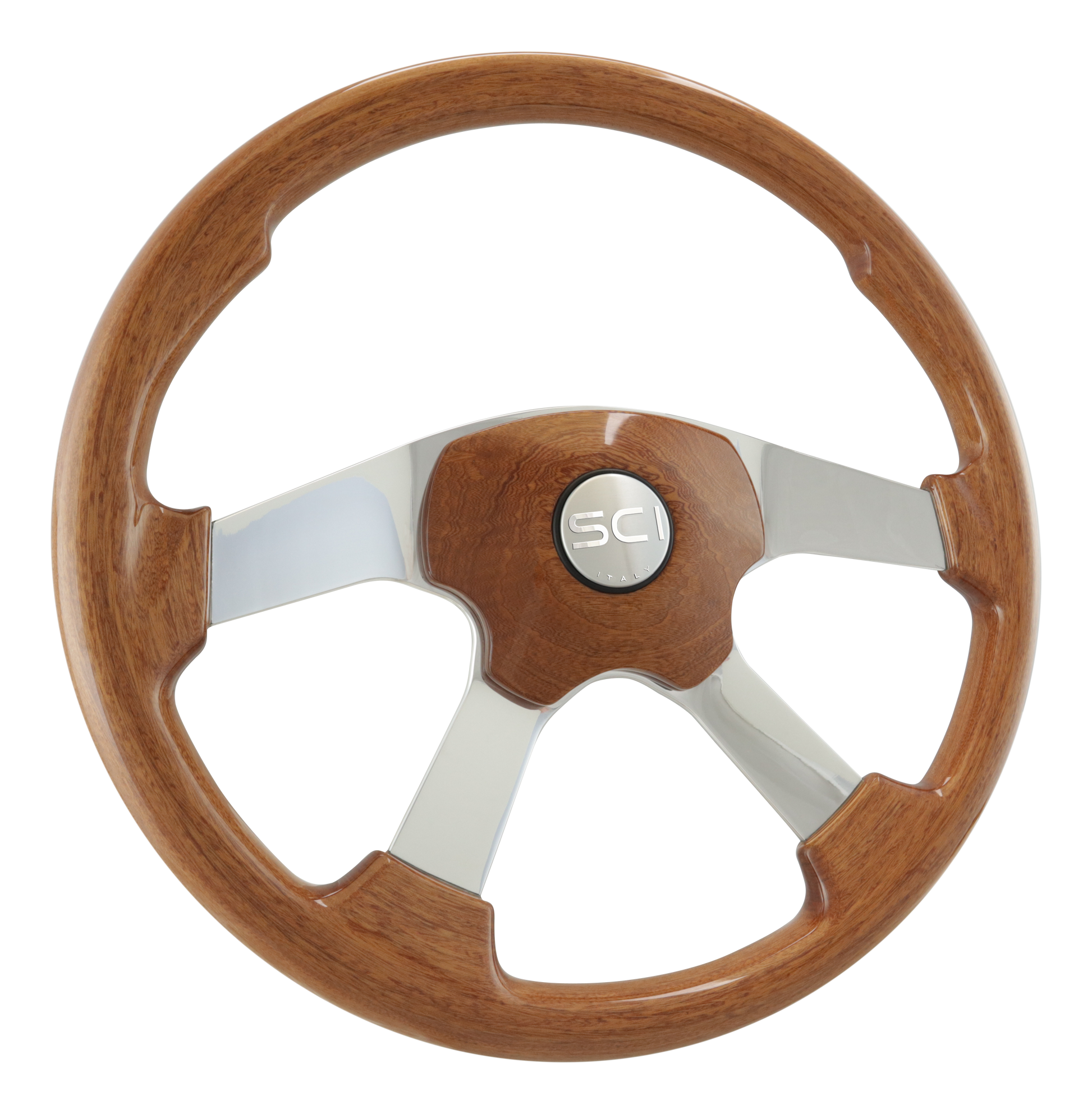 Wildwood Light Mahogany - 18" Stained Wood Rim, Pol. Alum. 4-Spoke, Elegant 4 Light Mahogany Stained Wood Pad, SCI HB - Silver