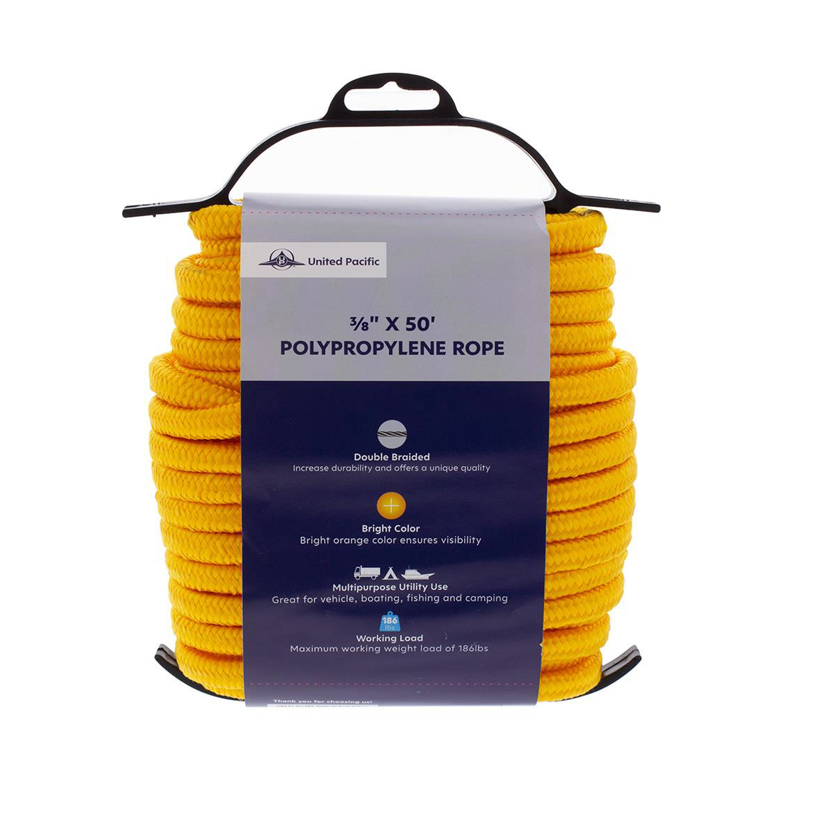 - 3/8" diameter, 16 strands double braided 50' long polypropylene rope.