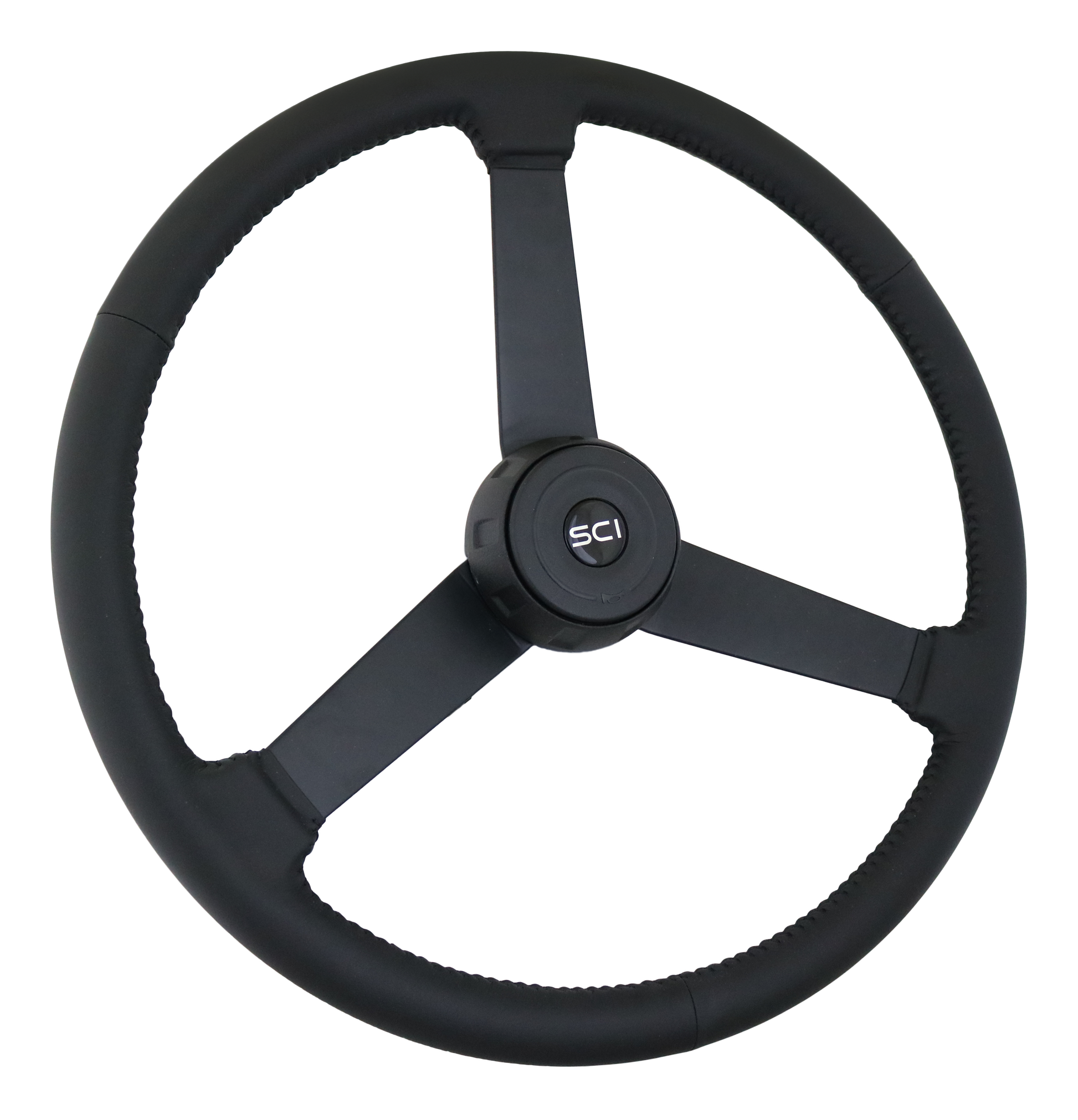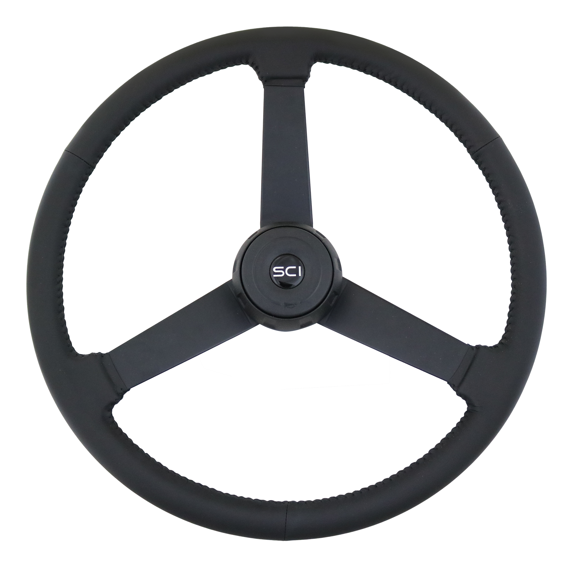 Steering Wheel Hoss - 20" Black Leather Rim, Black 3-Spoke, Black Metal Textured Bezel, Black Horn Button - Black SCI Logo