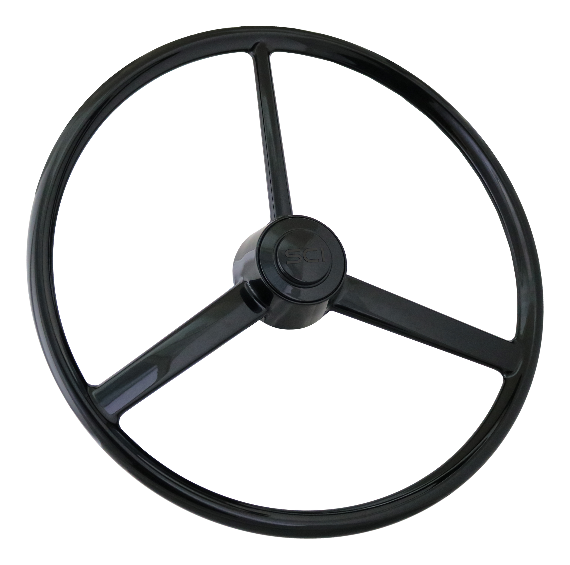 20” Painted Polyurethane Rim, 3-Spoke Steering Wheel, Retro Ring, Black on Black SCI Horn Button