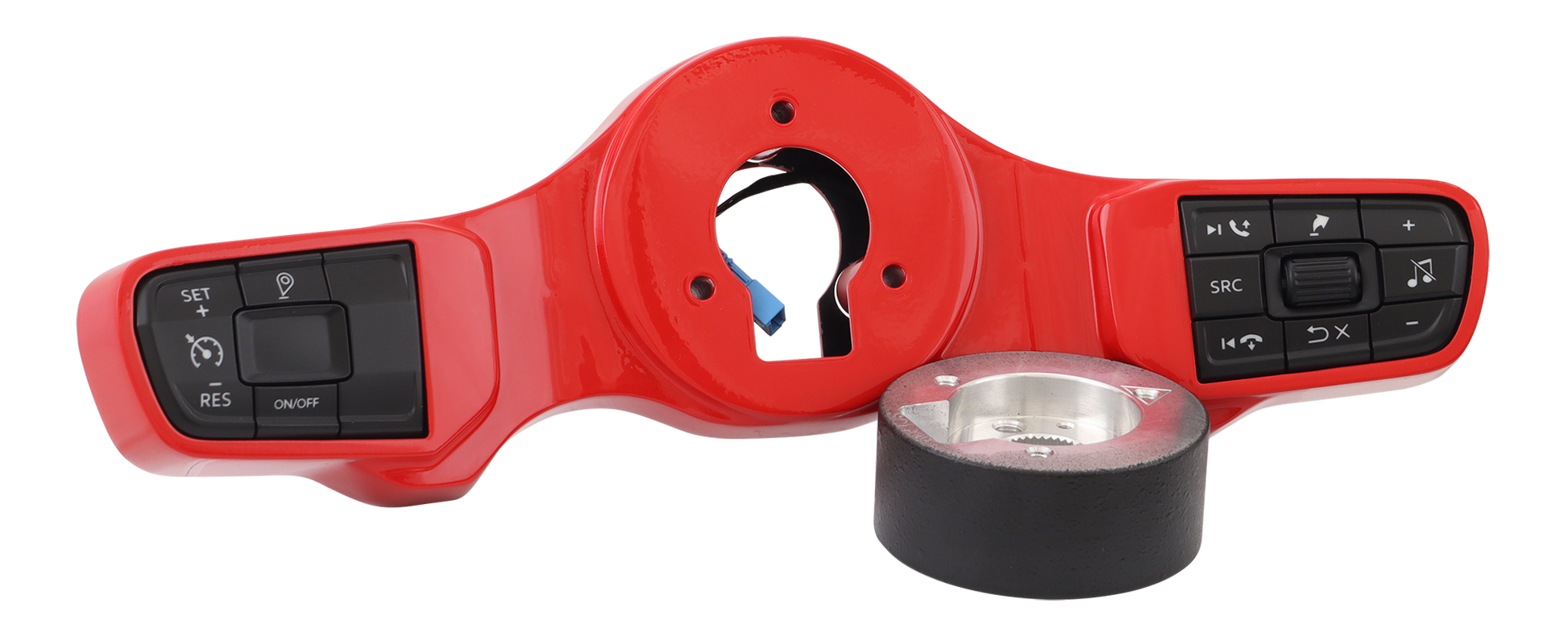 Classic Viper Red Switch Pad Gen 5 for 3-Hole Series 4-Spoke Wheel - 2021 and Up Peterbilt/Kenworth with Digital Dash, includes 839 Hub