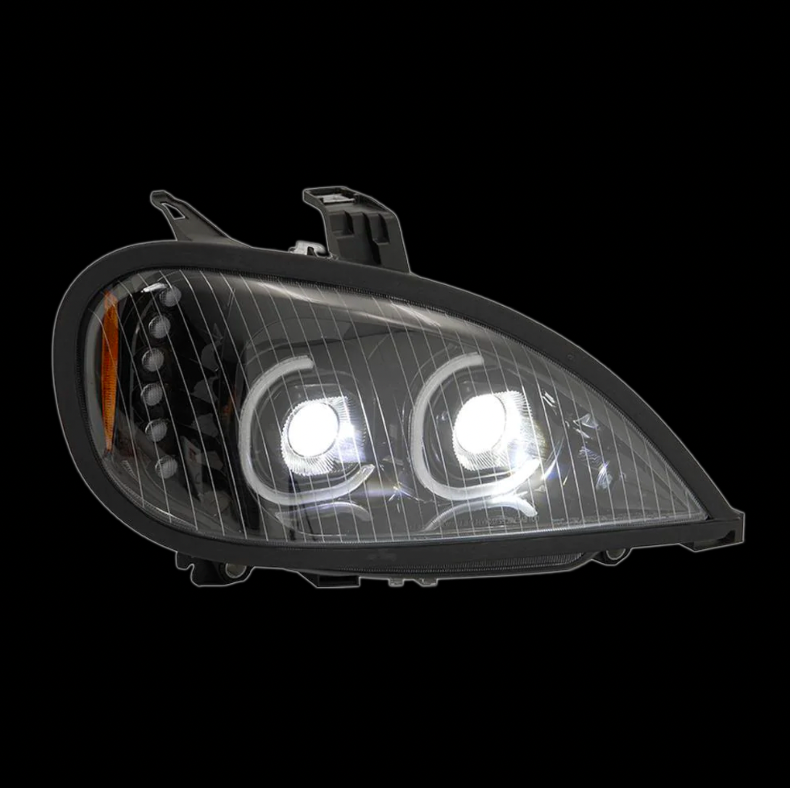 Black LED Headlight Projection With LED Bar Fits Freightliner Columbia