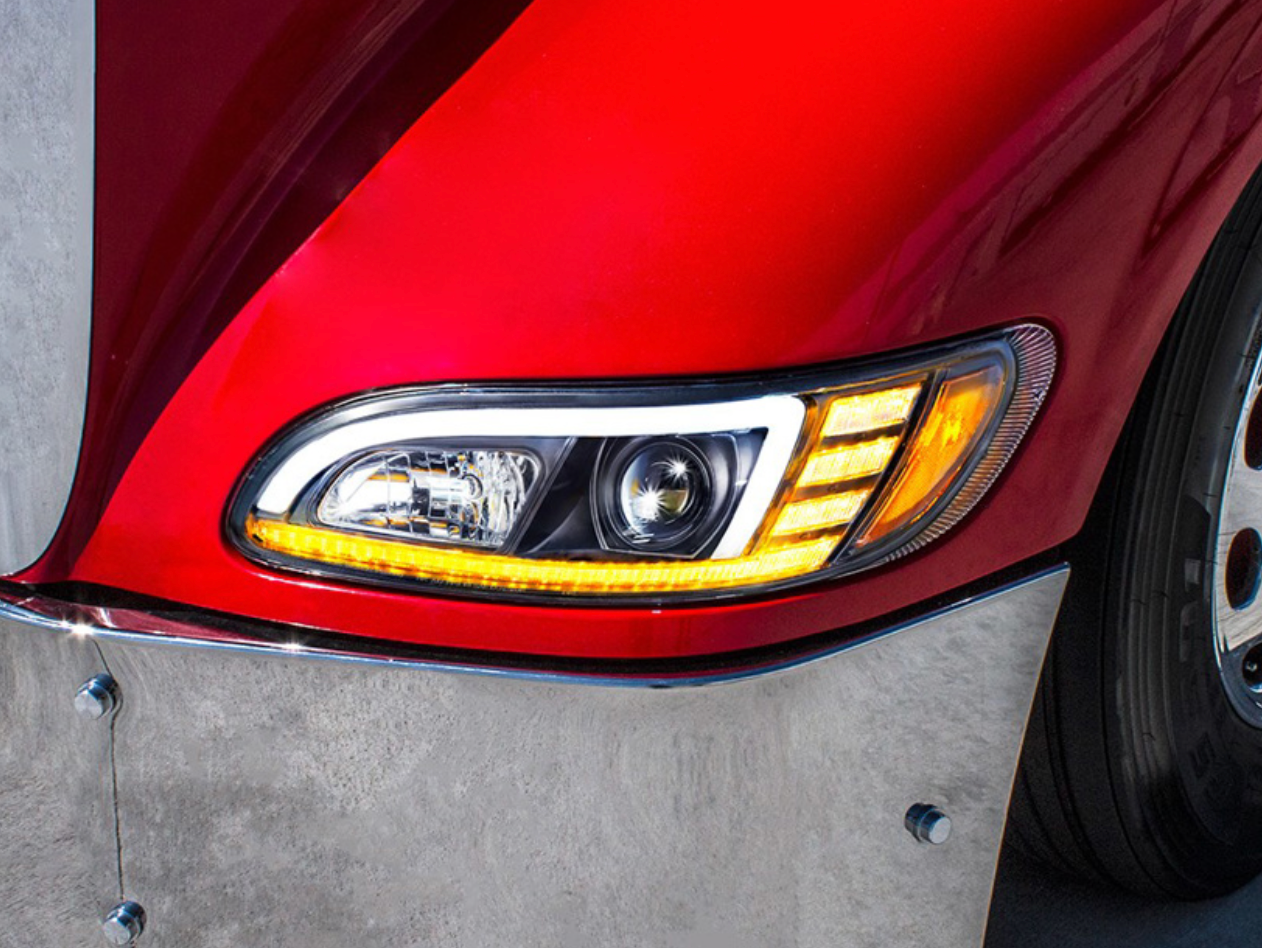 BLACK PROJECTION HEADLIGHT WITH LED SEQUENTIAL TURN & DRL FOR 2005-2015 PETERBILT 386 /335 (2005 - 2010) - PASSENGER