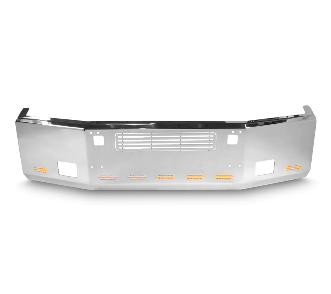 Bumper 20" Chrome Kenworth T800 (1986-2003) Aero, Grille Insert w/ Tow, Fog & 9 Hidden Light Holes