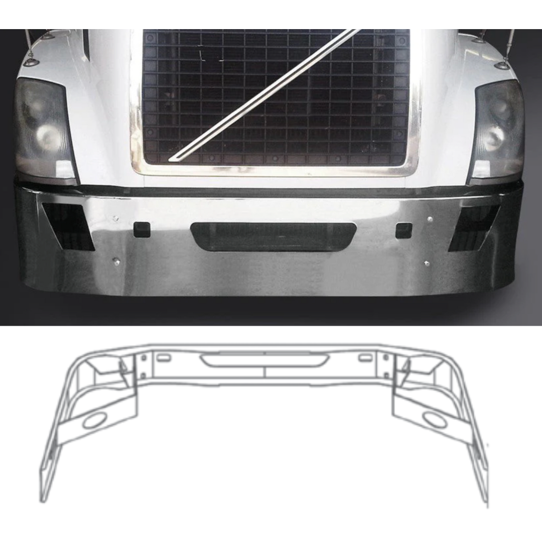 Bumper 20" Chrome Volvo VNL Set Back Axle (2004-2017) w/ Vent, Tow & Fog Light Holes.