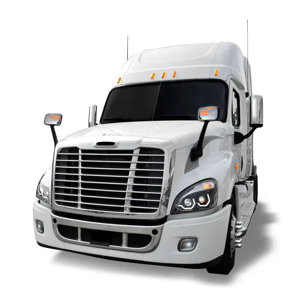 - Chrome grille with bug screen for 2008-2017 Freightliner Cascadia.