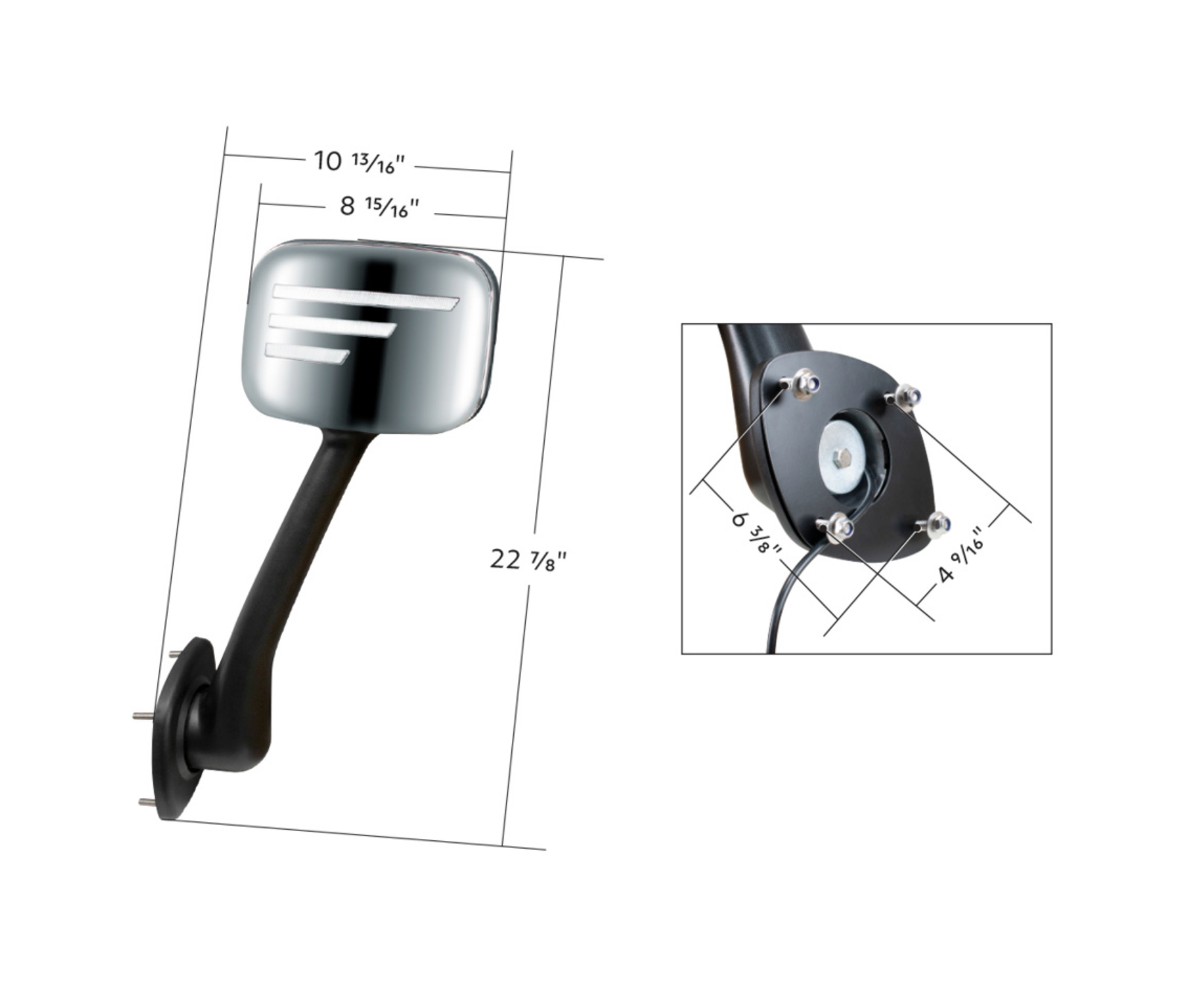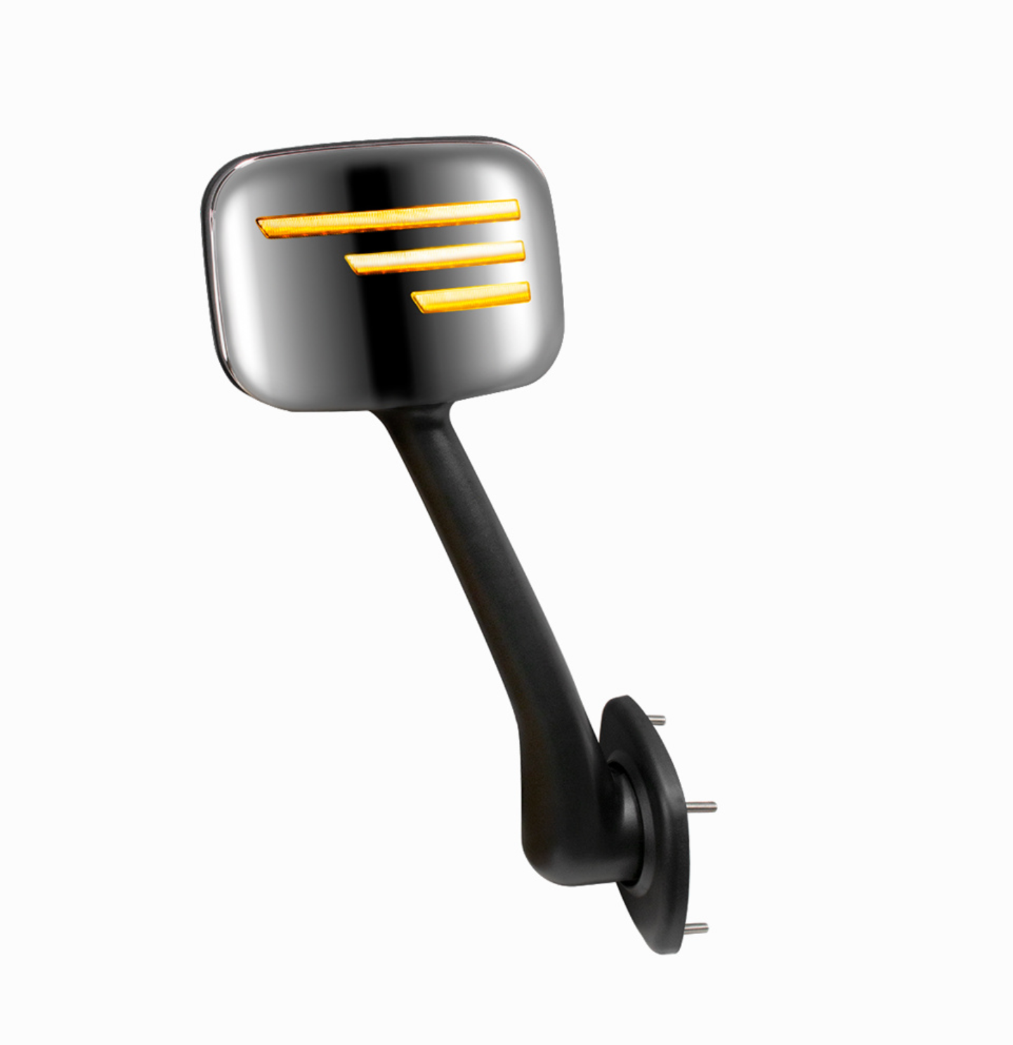 CHROME HOOD MIRROR ASSEMBLY WITH SEQUENTIAL LED TURN SIGNAL FOR 2008-2017 FREIGHTLINER CASCADIA - PASSENGER