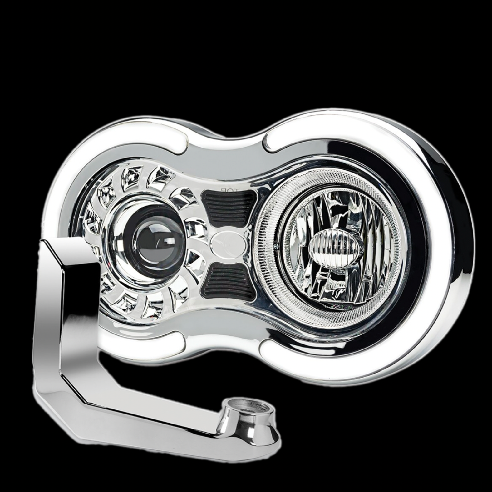 CHROME "RETRO SERIES" HEADLIGHT ASSEMBLY WITH DUAL FUNCTION HALO ACCENTS & MOUNTING BRACKET