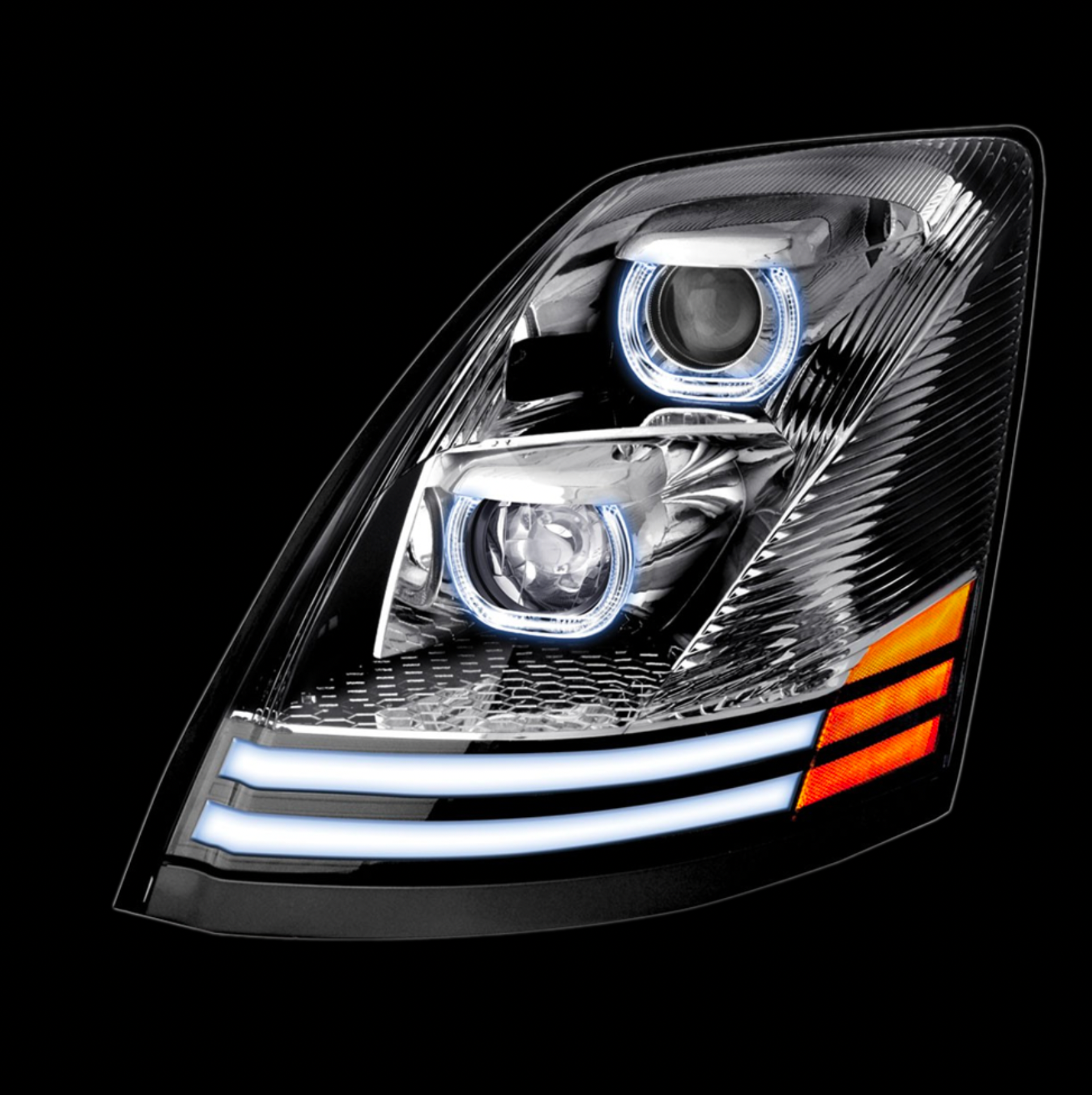 Chrome Volvo VN/VNL LED Projector Headlight Assembly with LED Dual Function LED Strips