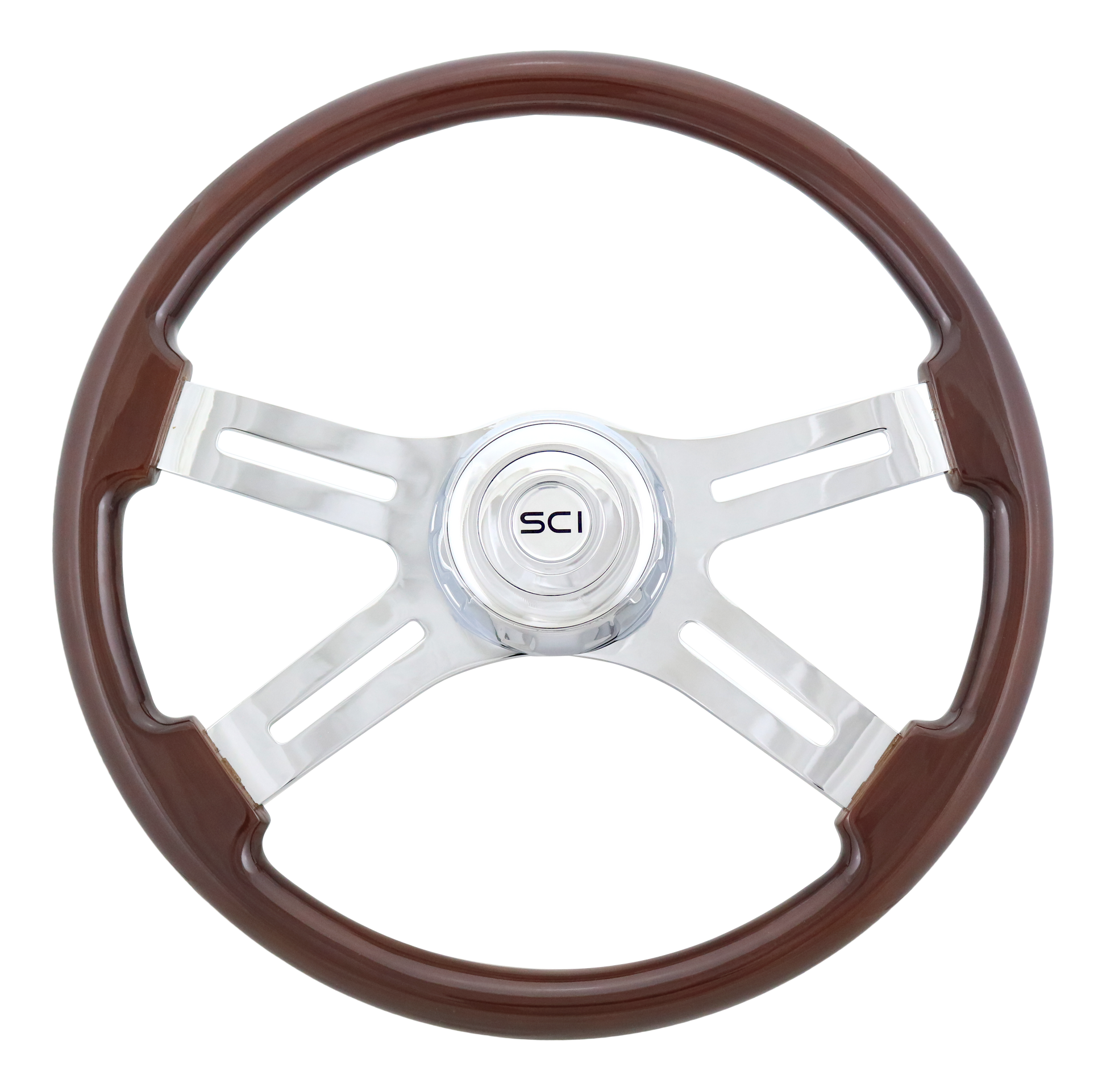 18" Wood Rim, Chrome 4-Spoke w/Slot Cut Outs, Chrome Bezel, Chrome Horn Button - Logo