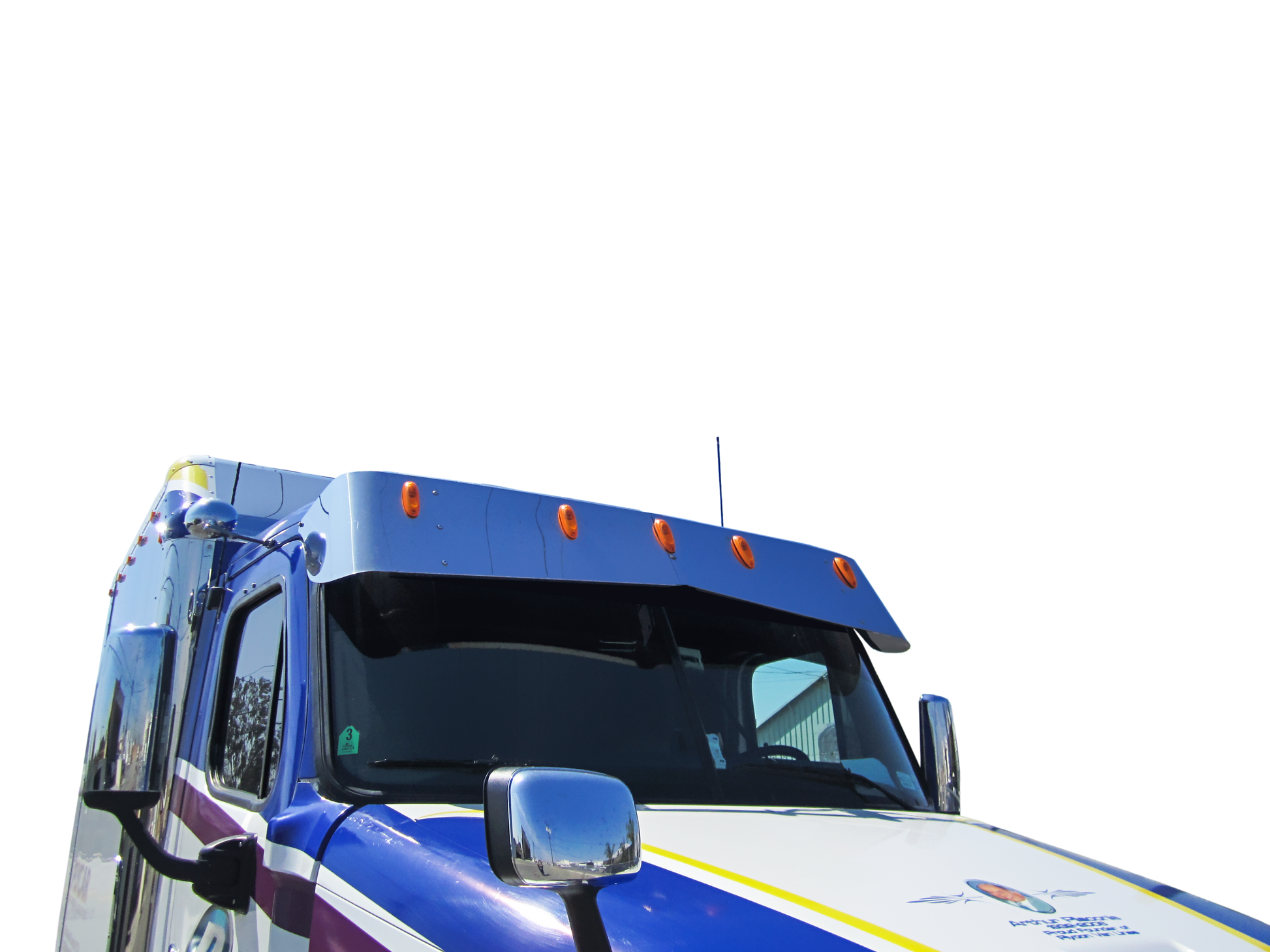 Freightliner Cascadia Day Cab 16" x 13" Bowtie Visor w/5-OEM Light Holes (1 Hole Side Mount)