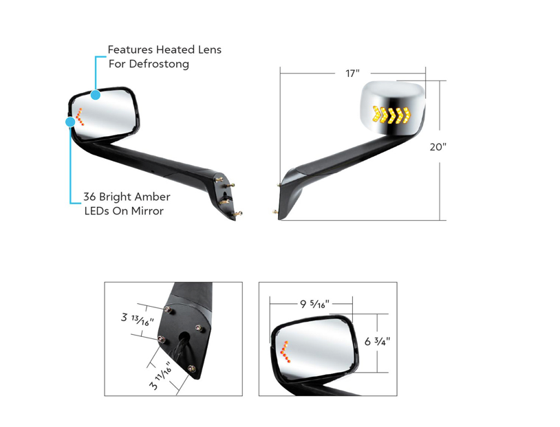 - Rear facing turn signal LEDs embedded on mirror glass.