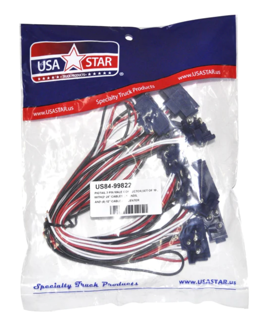 Pigtail 3 Prong Connector Set Of 10 ,With (2) 24” Cables On Ends And (8) 12” Cables In Center