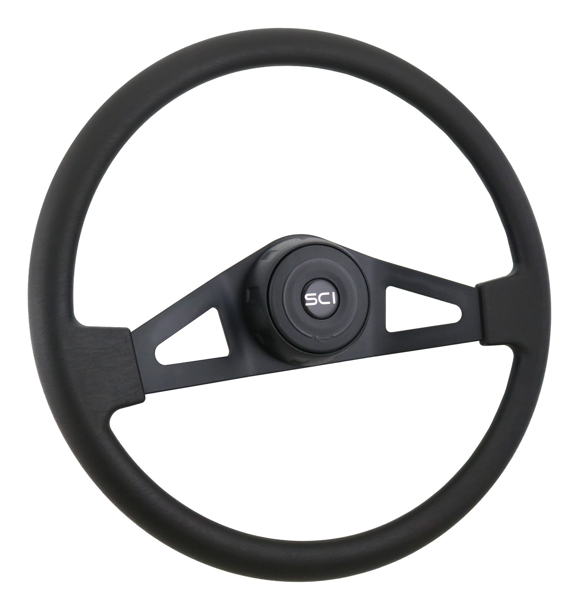 Pinion Poly BL - 18" Polyurethane Rim, Black 2-Spoke w/Triangle Cut Outs, Black Textured Bezel, Black Horn Button - Black SCI Logo