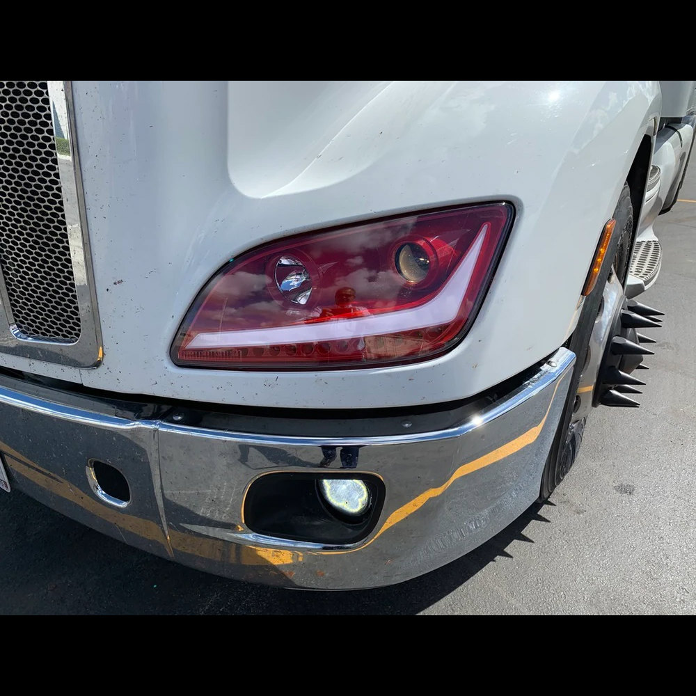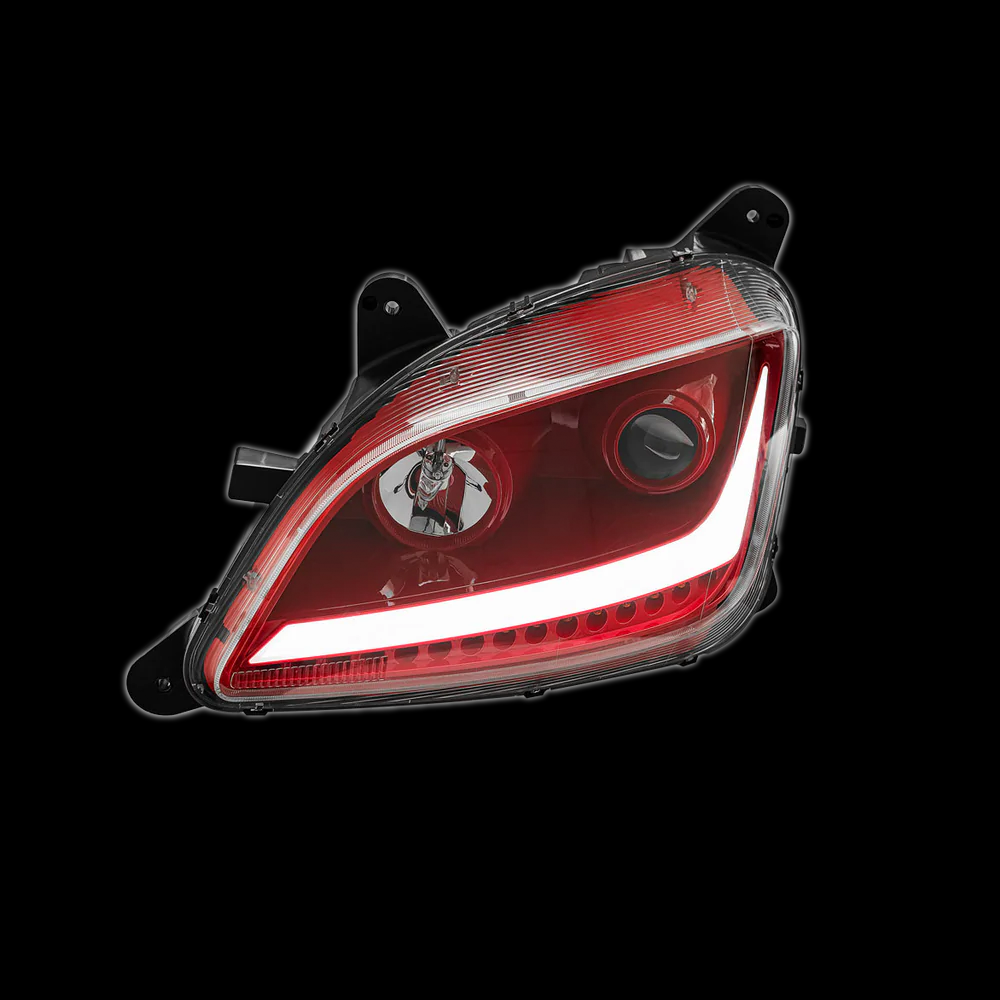 Red Housing Dragon Eye Headlight With LED Turn Signal and Day Light Bar (Driver Side ) fits Peterbilt 579 & 587